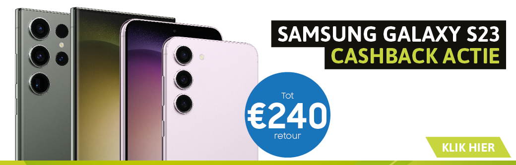 Samsung heeft de nieuwe Samsung Galaxy S23 serie geïntroduceerd. Wij hebben alvast alle aanbiedingen in combinatie met een Samsung Galaxy S23, S23+ en S23 Ultra op een rij gezet. Daarnaast krijg je nu ook een tijdelijke cashback die kan oplopen tot €240!